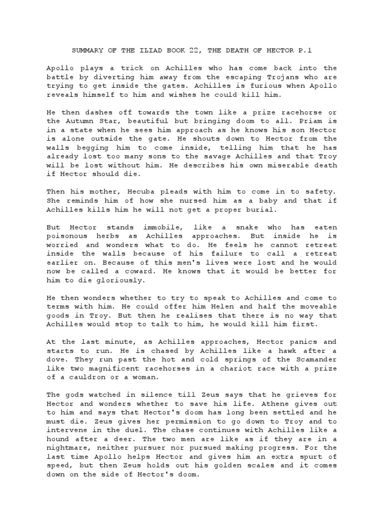 Summary Of The Iliad Book 22 The Death Of Hector Pdf Hector Achilles